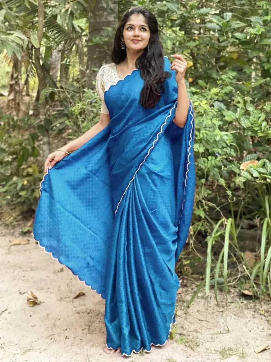 The blue color saree is 5.50 meters long and comes with a ready-made blouse.