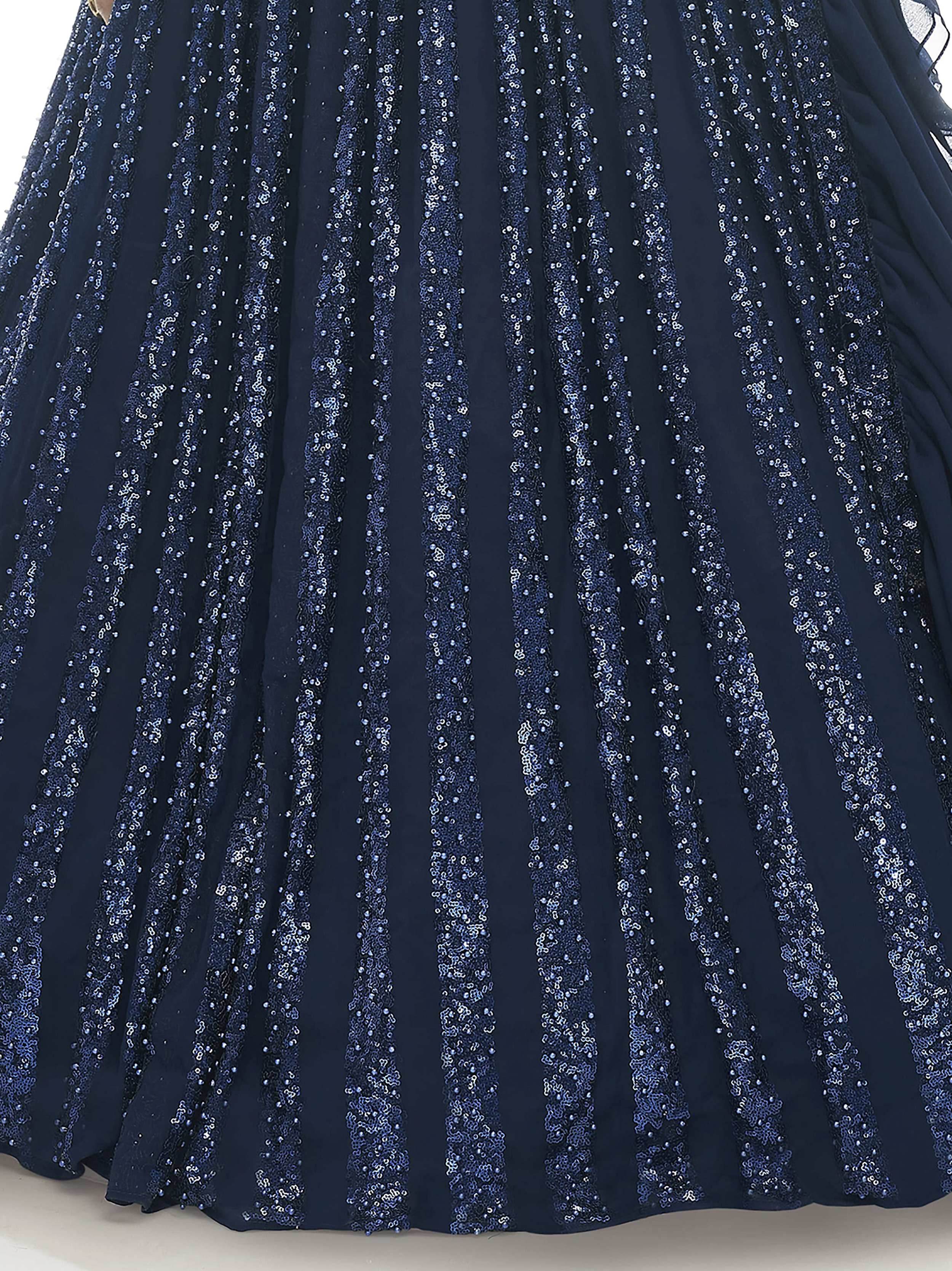 Make your look classy wearing this party wears navy blue color lehenga crafted with velvet fabric accomplished with sequins embroidery.