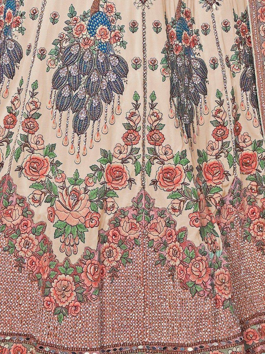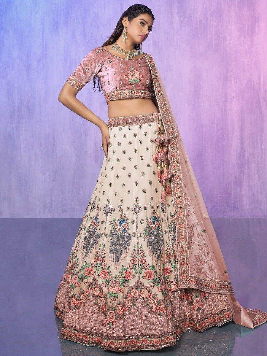 Introducing our stunning off-white floral embroidered georgette lehenga choli, a must-have addition to any stylish woman's wardrobe. Crafted with care and attention to detail, this designer lehenga choli is sure to elevate your style and make you stand out from the crowd.