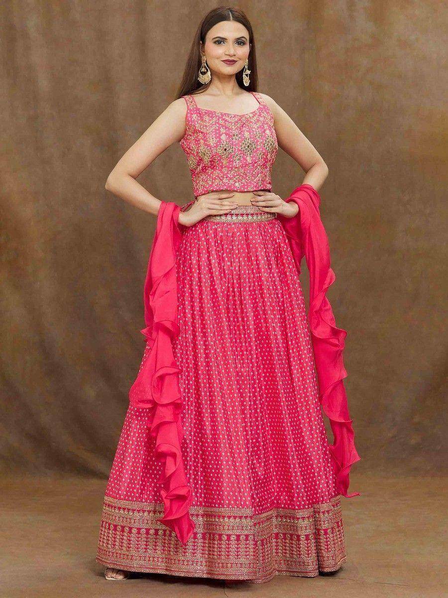 Our "stunning pink digital printed chinon reception wear lehenga choli" is a must-have for any woman looking to make a statement on special occasions. With its exquisite design, comfortable fit, and attention to detail, this ensemble is perfect for those who appreciate traditional wear with a touch of modernity.