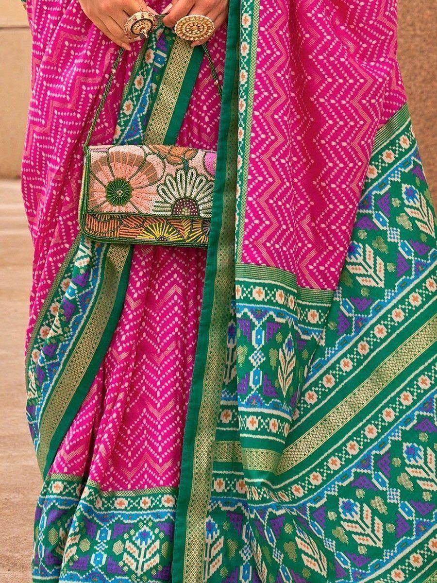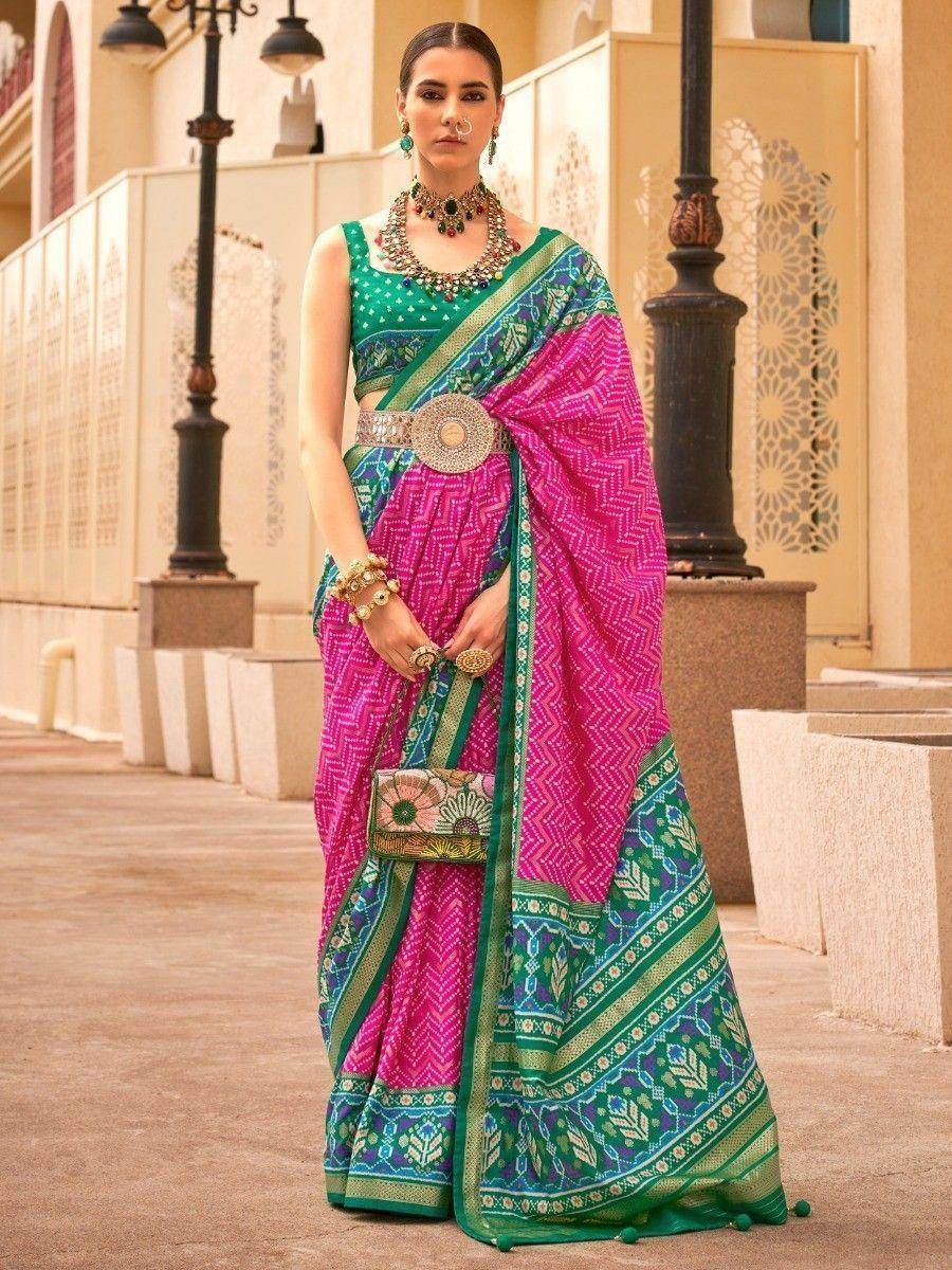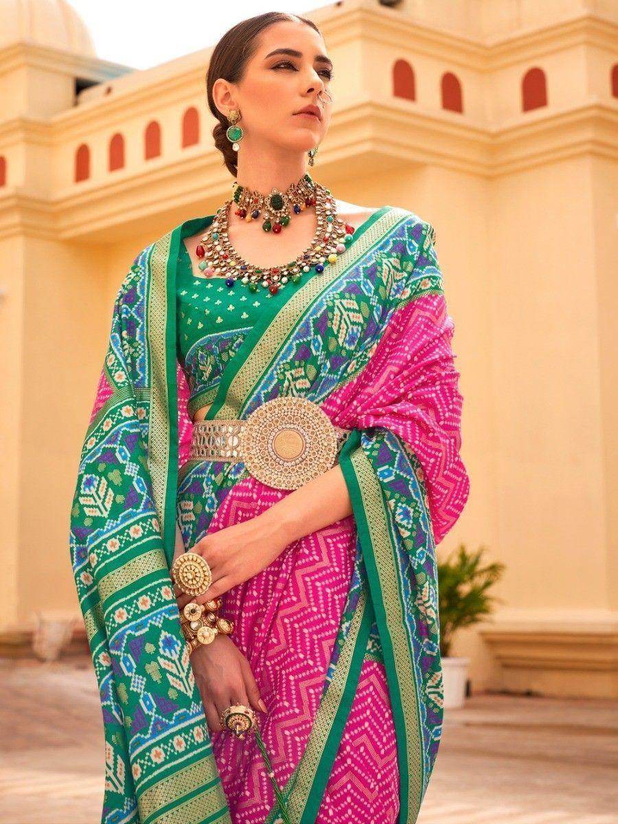 Our stunning pink digital printed silk festival wear saree with blouse is a must-have for every fashion-forward woman. Made from premium quality silk material and featuring intricate digital print work, this saree exudes elegance and sophistication.
