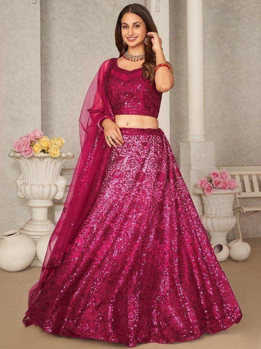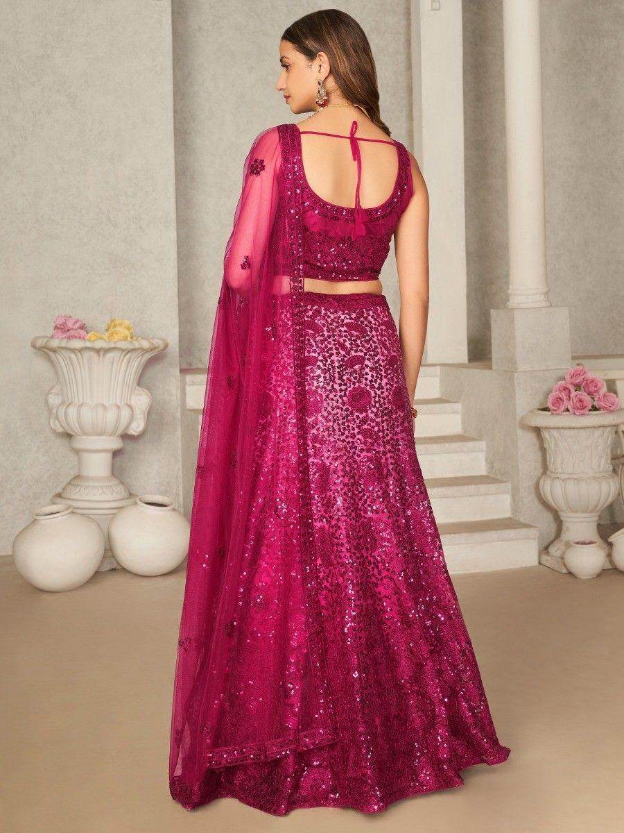 Our stunning pink sequins net reception wear lehenga choli with dupatta is a masterpiece that will make you the center of attention at any event. Its pink color, sequin work, and embroidered details create a mesmerizing ensemble that exudes grace and beauty. Whether it's a wedding, cocktail party, or reception, this lehenga choli will make you feel like a princess.