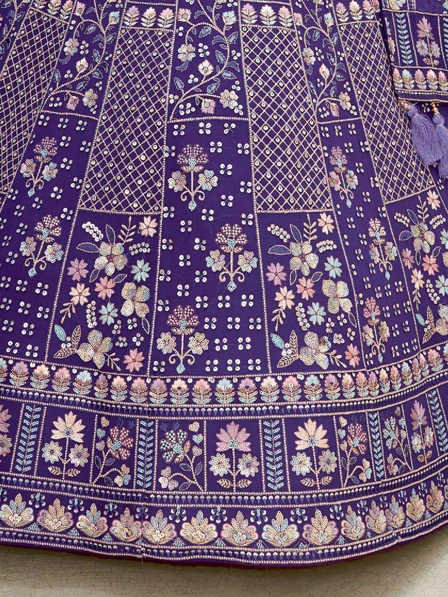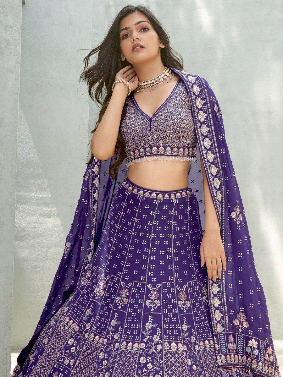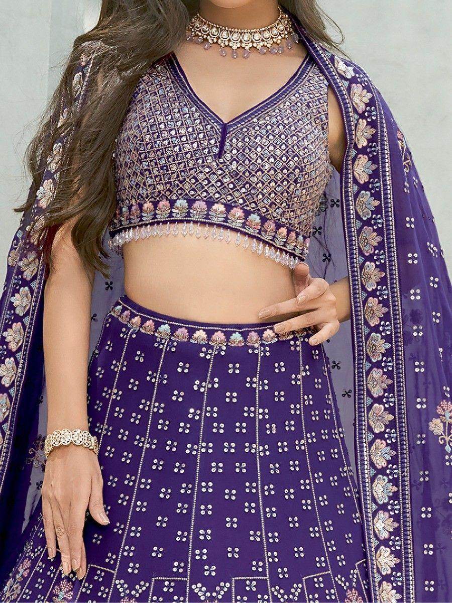 With its beautiful purple color, this lehenga choli is sure to make a lasting impression. The georgette material gives it a lightweight and flowy feel, making it comfortable to wear for long hours. The intricate sequin work and thread embroidery further enhance its uniqueness and elegance, making it a perfect choice for special occasions.