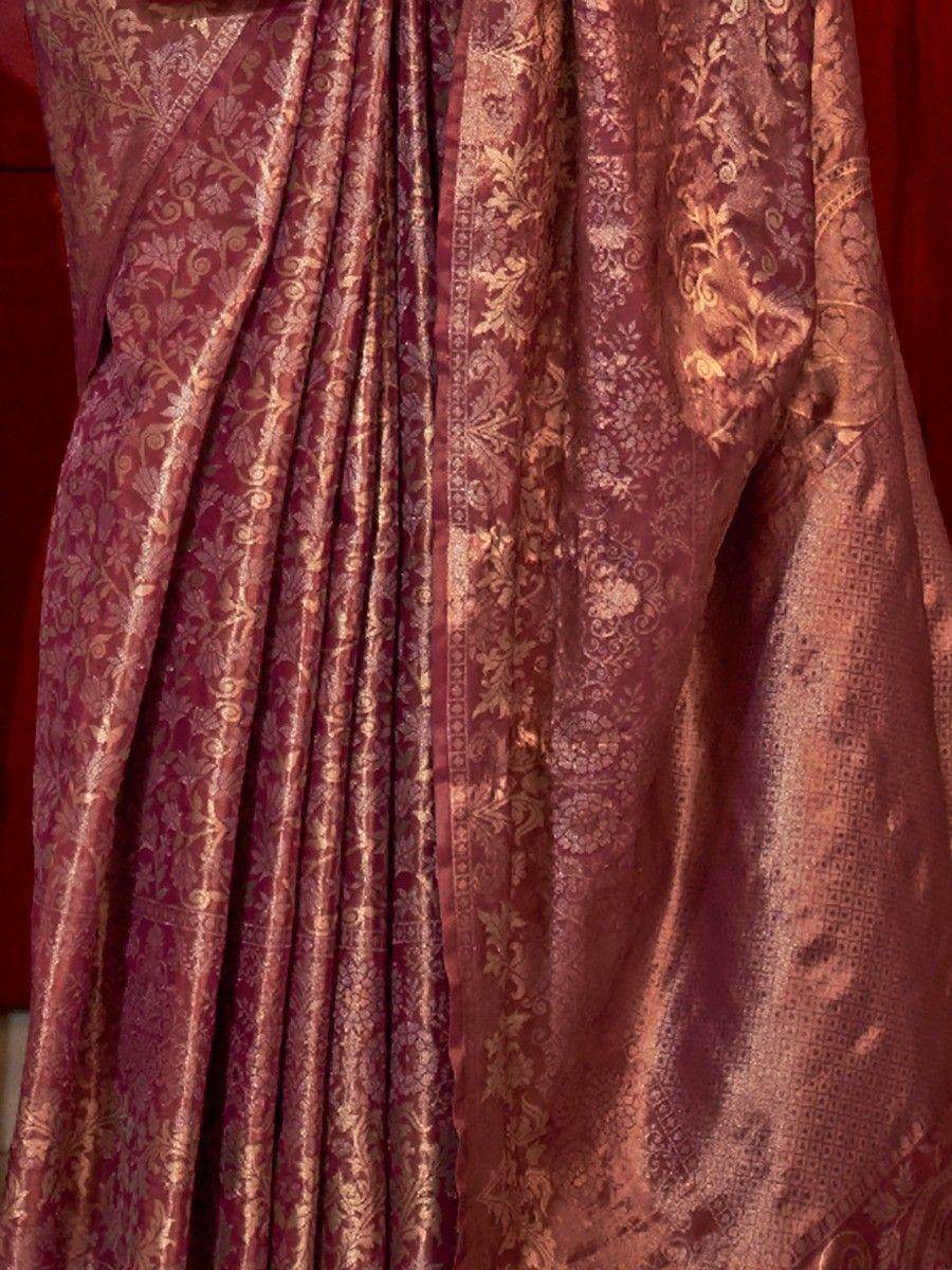 Enhance your elegance and captivate everyone's attention with our stunning rani pink zari woven silk event wear saree with blouse. This exquisite silk saree, made from high-quality silk material, features intricate zari weaving work, adding a touch of luxury and opulence to its design.