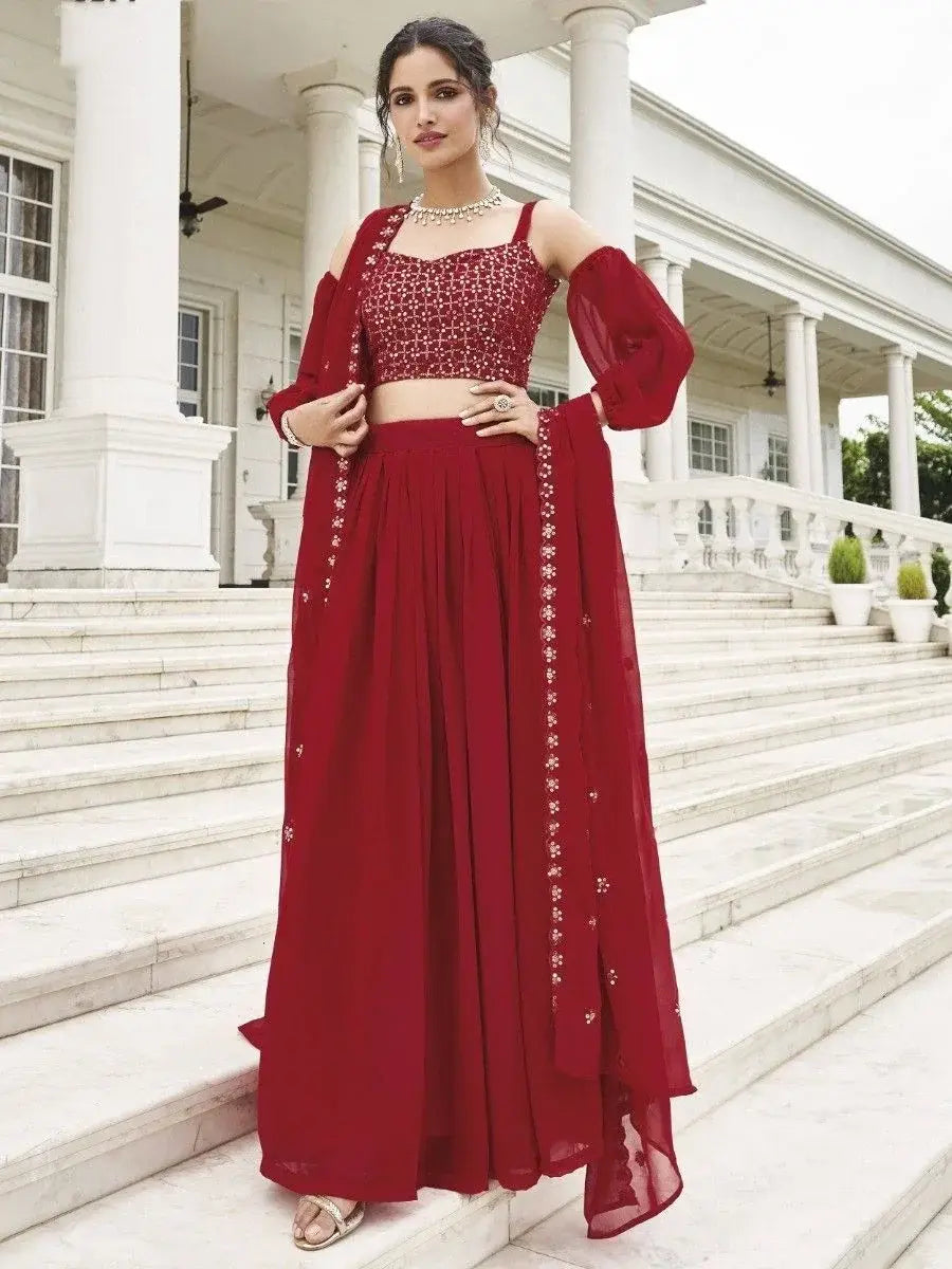 The stunning red sequins georgette party wear lehenga choli with dupatta is a must-have for any fashion-savvy woman. It combines the latest trends in Indian fashion with high-quality materials and exquisite craftsmanship. Whether you're attending a wedding, cocktail party, festival, or any other special event, this lehenga will make you look and feel like a queen.