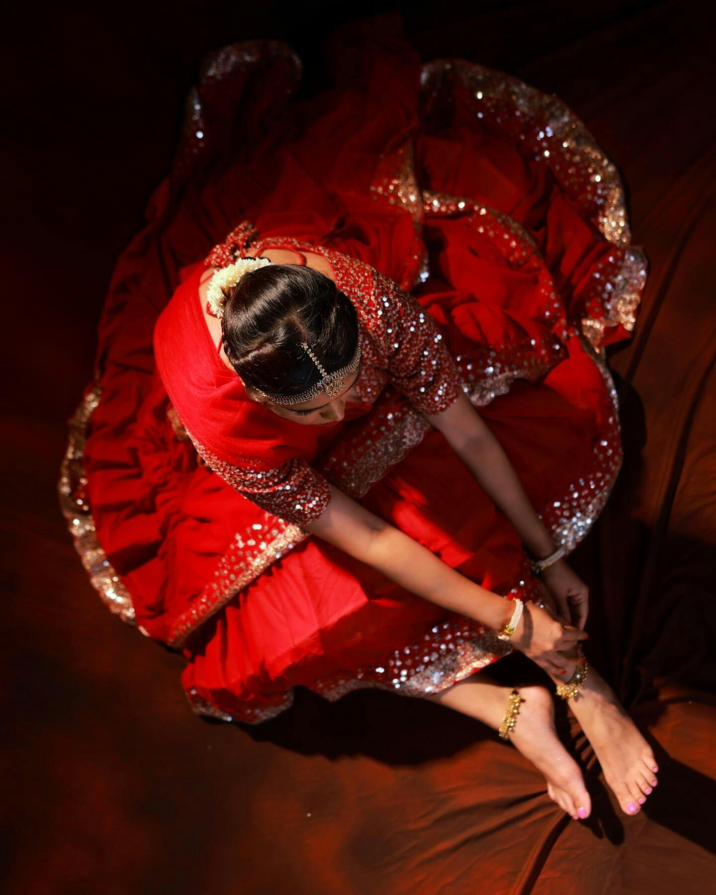 Our stunning red sequins georgette wedding wear lehenga choli is the perfect choice for anyone looking to make a statement at their next special event. With its beautiful design, comfortable fit, and versatile styling options, this outfit is sure to become a staple in your wardrobe.