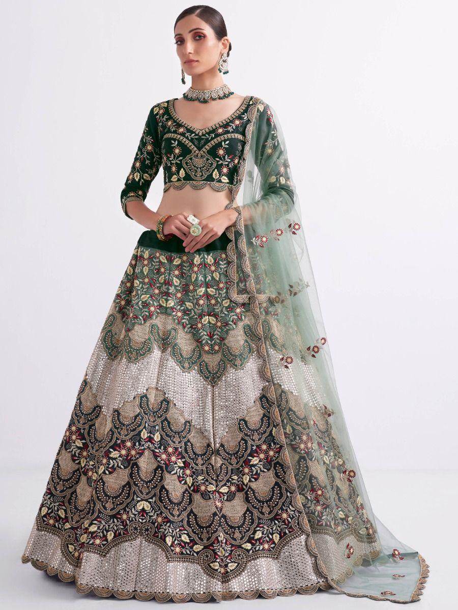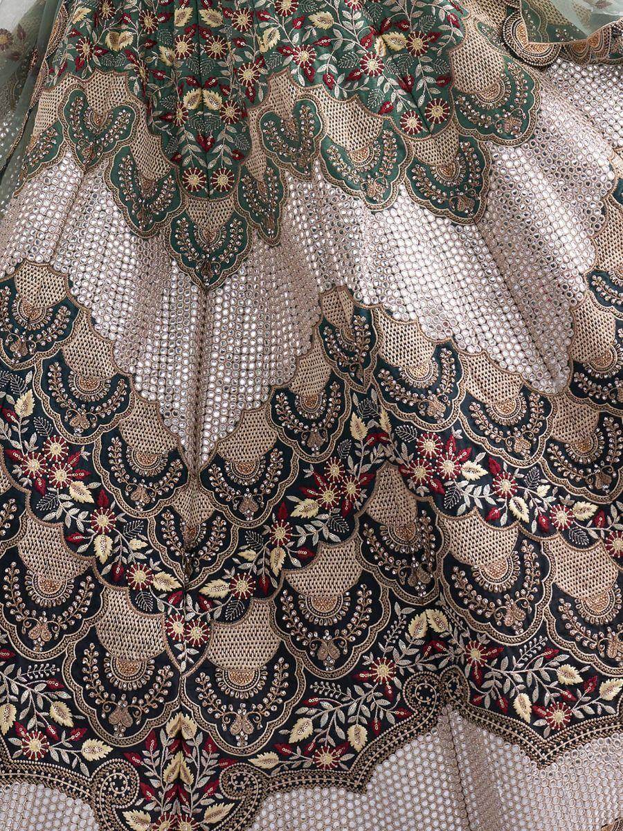 Add a subtle luminosity to your outfit with this mesmerizing dark green color lehenga made with silk material beautified with amazing color combination thread embroidery, sequines, foil mirrors, mette and zari work on it.