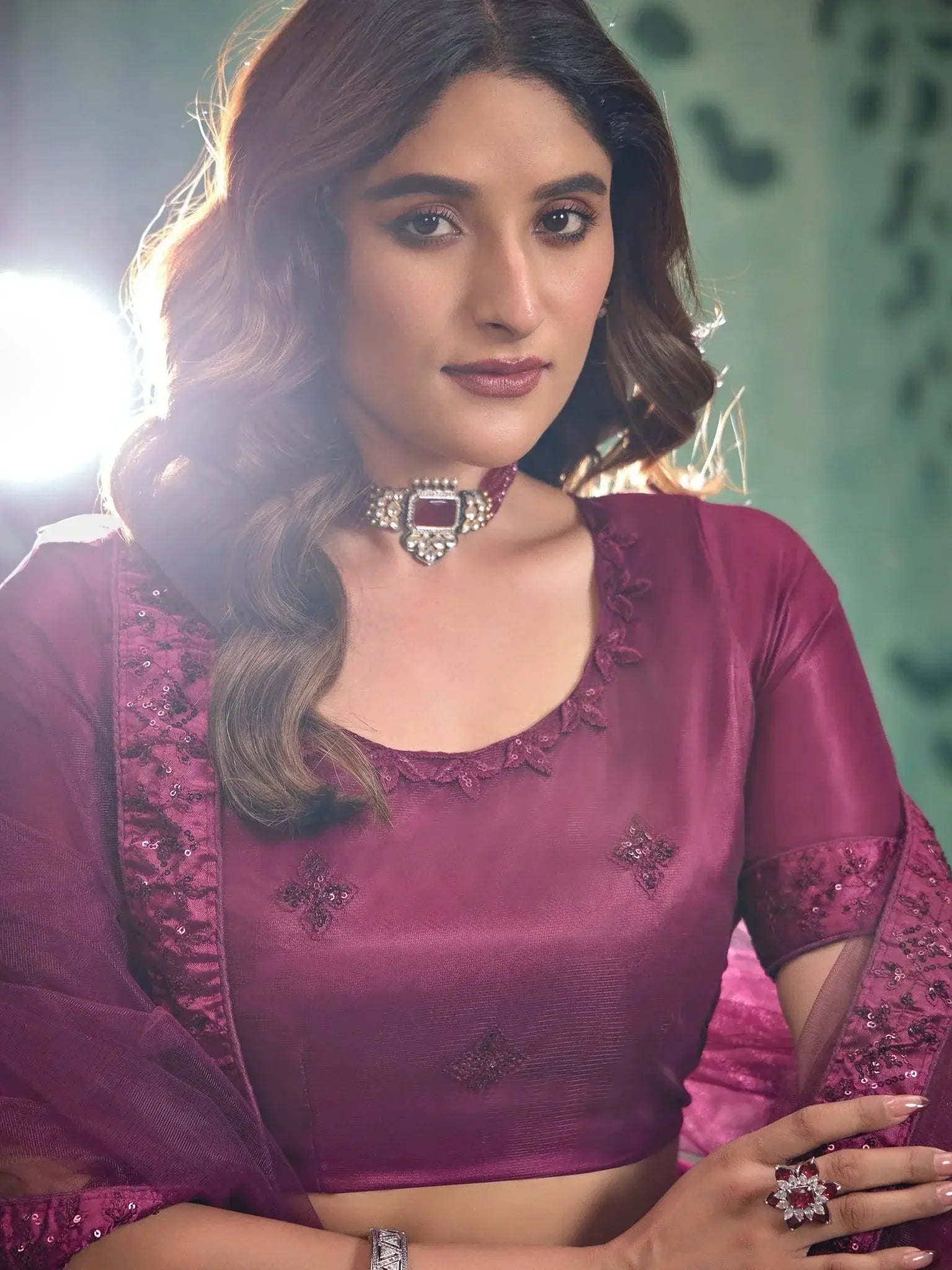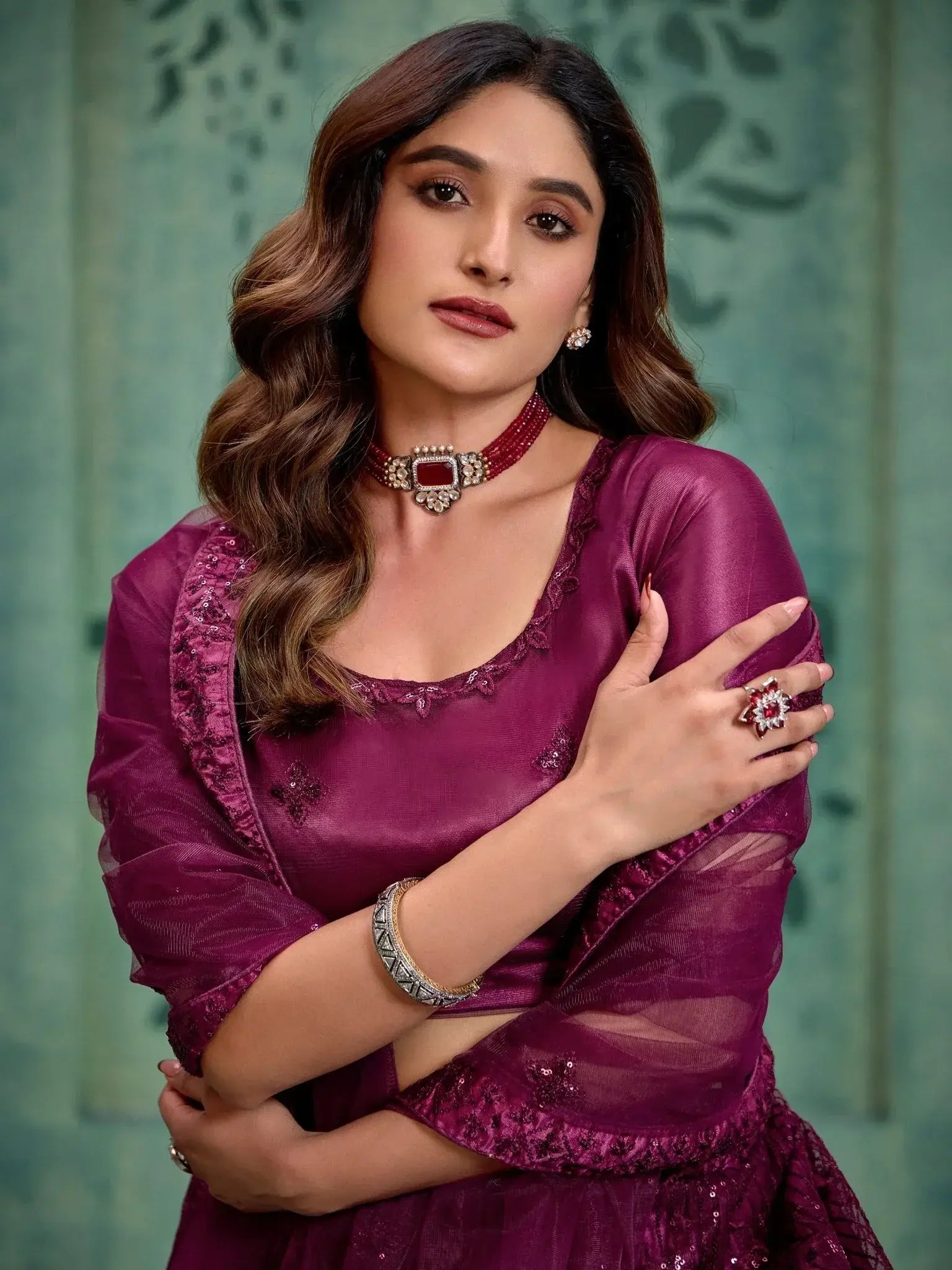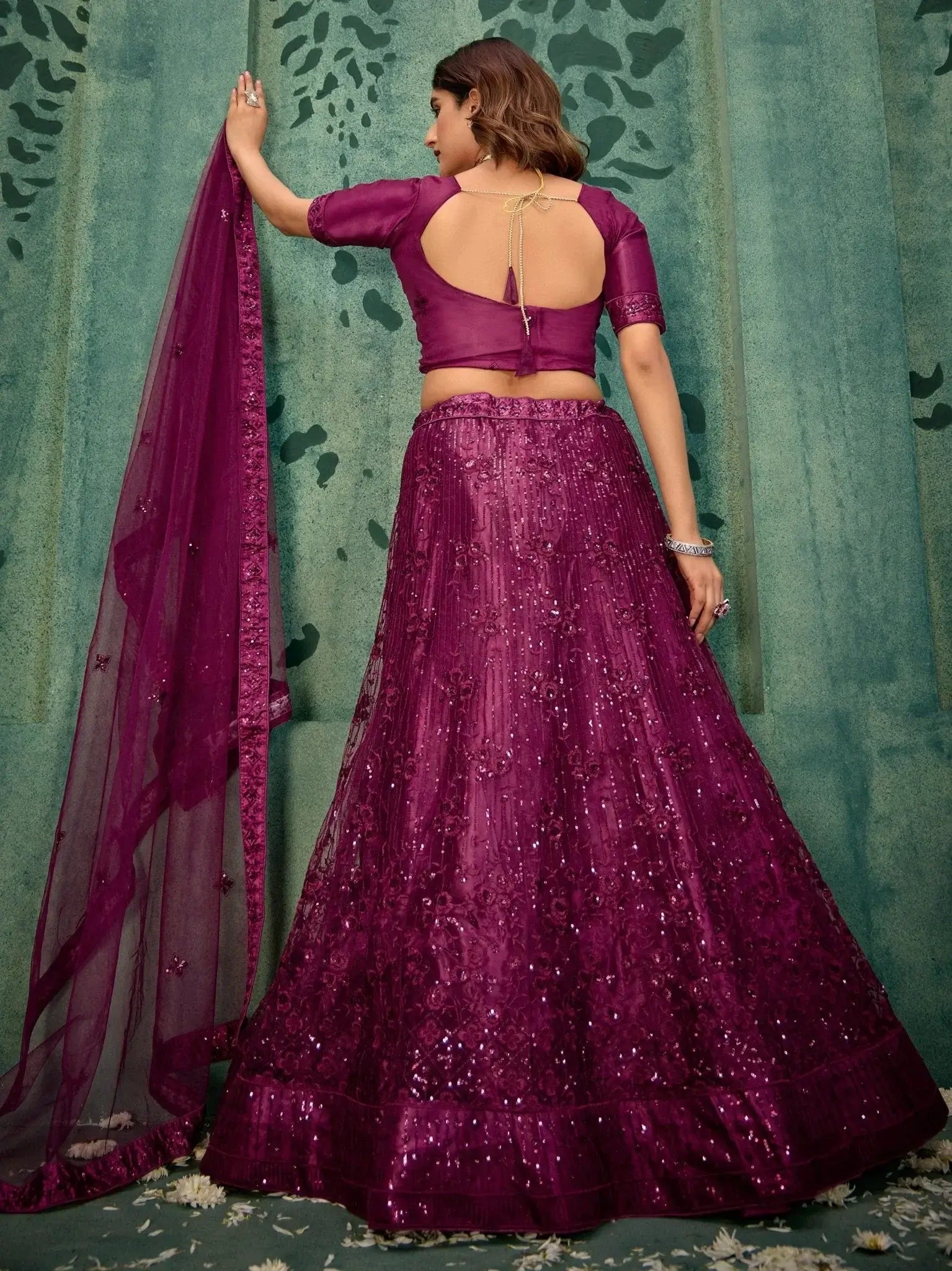 The rich color and intricate embroidery make it a standout piece for any special occasion, giving you a beautiful and regal look. Ethnic wear collection with our stunning wine sequins net designer lehenga choli with dupatta. Don't miss out on adding this exquisite ensemble to your wardrobe for a truly unforgettable look.