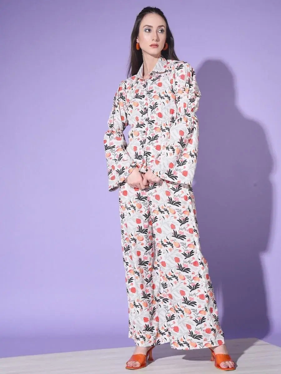 The Stylish White Floral Printed Platinum Creap Events Wear Palazzo Top is a must-have for any fashion-forward woman looking to make a statement. This modern white platinum creap top is adorned with colorful floral printed work, making it truly a piece of art. The captivating white floral print top comes with a similar colored platinum creap palazzo with the same embellishment, making it a complete set. This attractive white printed palazzo top is ready to wear in all sizes (S, M, L, Xl).