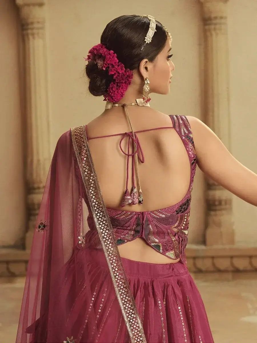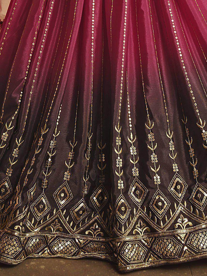 Amaze the world in this deep pink color lehenga made of silk material embellished with floral sequins work all over.
