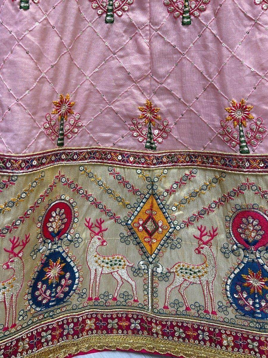 This tantalizing peach sequins silk wedding wear lehenga choli is not just a piece of clothing, but a statement of your style and grace. It is designed with love and pride, keeping in mind the beautiful you. Perfect for festivals, weddings, functions, and other special occasions, this lehenga choli is sure to turn heads wherever you go.