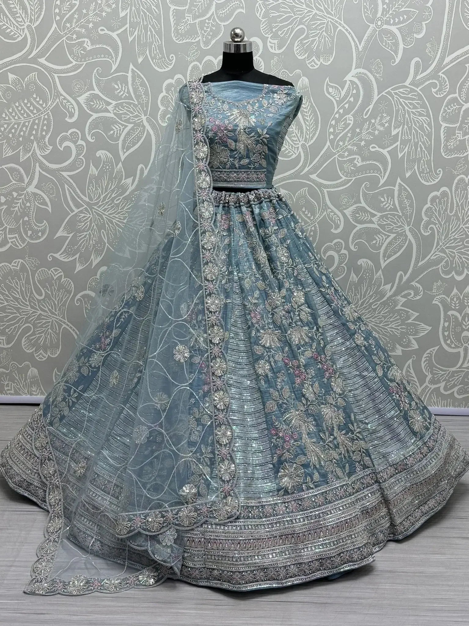 In a world where tradition meets modernity, the blue silk lehenga stands out as a symbol of elegance and grace. Crafted for special occasions, this exquisite piece is designed to elevate any wardrobe, making it the perfect choice for weddings and festive gatherings. With its rich, vibrant color, the lehenga provides a stunning backdrop for the intricate dori work and detailed embroidery that adorns its flowing fabric.