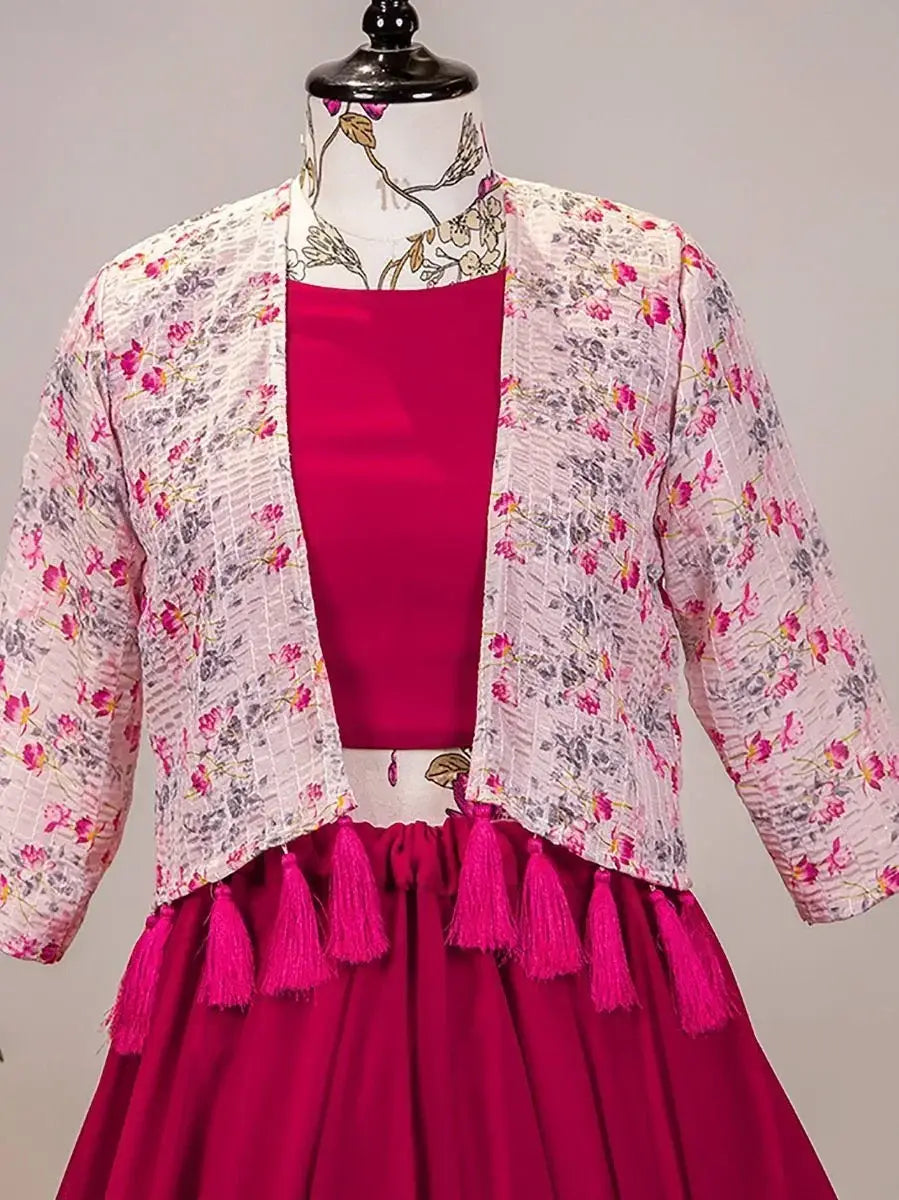 Ditch the usual and go for something indo-western like this hot pink lehenga that floral koti makes co-ords set more enhanced, It's totally one of those simple lehengas you've wanted to experiment with at any casual occasion, pool party or events.